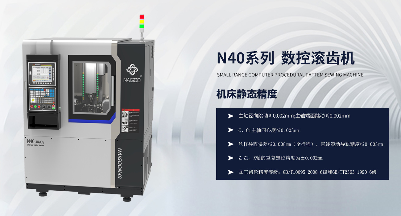 NAIGOO N150型数控滚齿机是一款5轴/6轴的立式数控滚齿机,可以通过展成或分度方式加工齿轴、齿轮(直齿、斜齿、鼓形齿等)、蜗轮、同齿轮、花键等。N150型数控滚齿机配备了Higerman数控系统,电子齿轮箱(EBD)功能及自主开发的滚齿机软件,人机对话式界面,无需系统编程,直接填表输入相关参数即可进行加工。