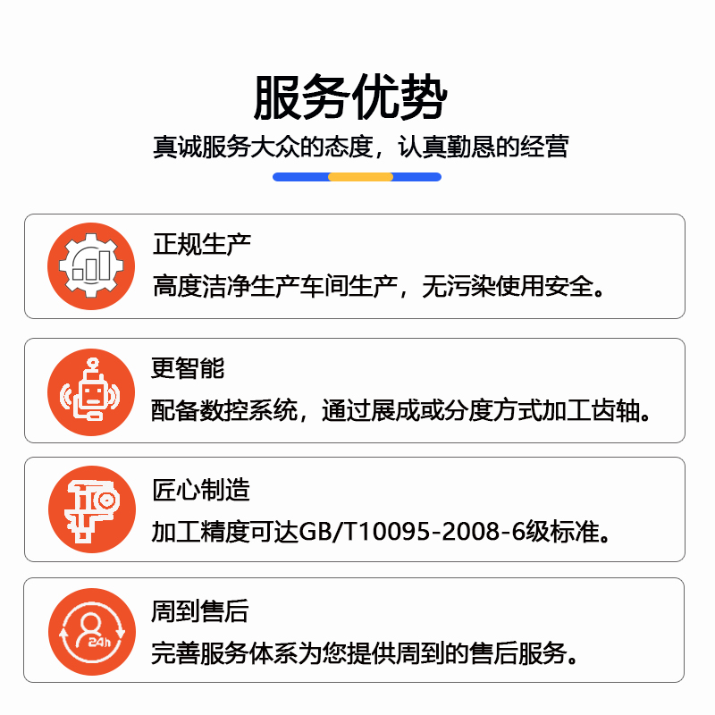 ■ 高效率 机床拥有高的刀具主轴转速和高的工作台转速,大大提高切削效率;适合采用多头滚刀强力大走刀量高速切削,加工效率极高;不同模数、不同齿数、不同螺旋角及不同螺旋方向的双联及多联齿轮可在一次安装下完成齿部的滚切,还能单分度铣槽;