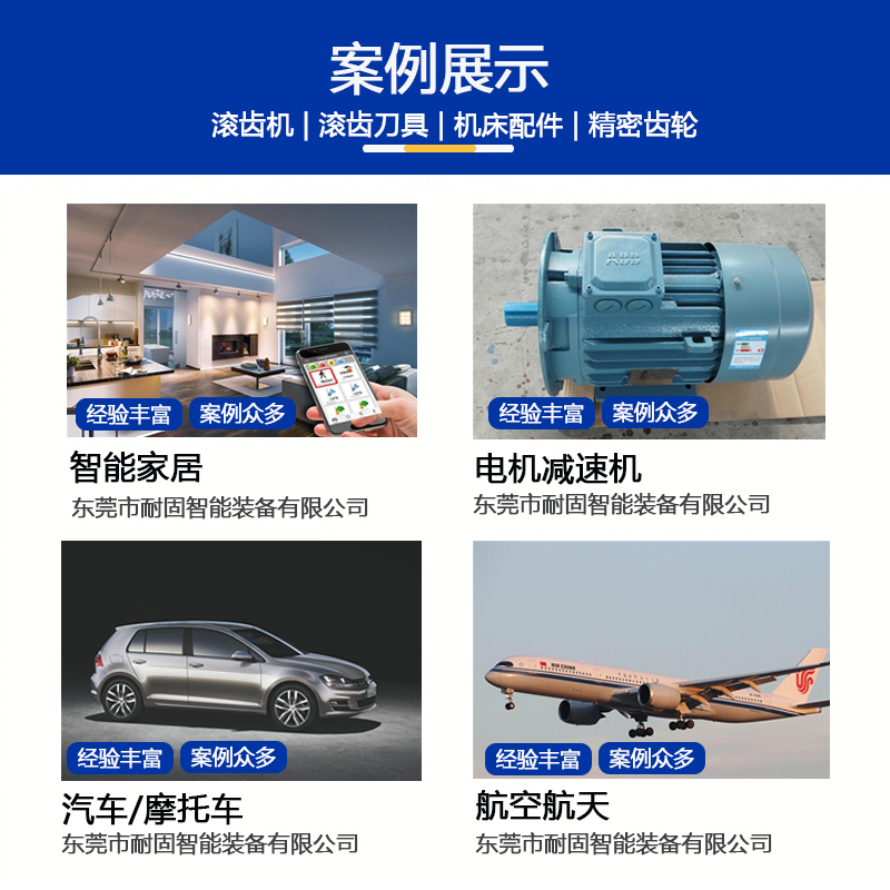不同模数、不同齿数、不同螺旋角及不同螺旋方向的双联及多联齿轮可在一次安装下完成齿部的滚切,还能单分度铣槽;
